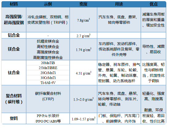目前已在车身、底盘、动力总成、传动系统等多方面进行了轻量化的升级和探索。