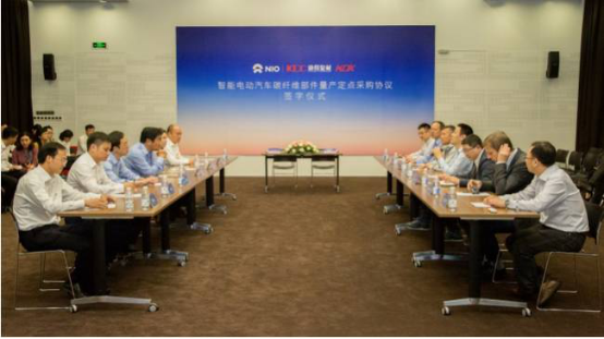 2017年6月22日,蔚来汽车与康得新、康得复材在上海正式签署智能电动汽车碳纤维部件量产定点采购协议,就碳纤维部件的样件开发和量产供应展开深度合作。
