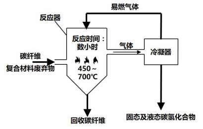 高温热解法是通过空气或惰性气体热量将复合材料的树脂基体分解为氢气、甲烷、碳氢化合物等气体以及低分子量的有机物。