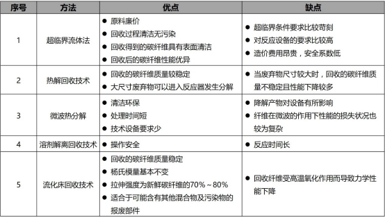 碳纤维及其复合材料回收技术优缺点对比