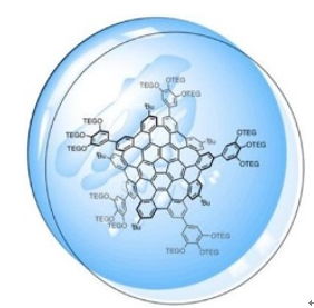 纳米石墨烯是具有独特的电子、光学和机械性能的纳米级碳分子,并且被认为是很有电子和生物医学用途前景的材料。然而,纳米石墨烯的扁平结构导致其在各种溶剂中极易发生堆叠和聚合,因此其难以溶于各种溶剂,并由此引起生物应用中的并发症。
