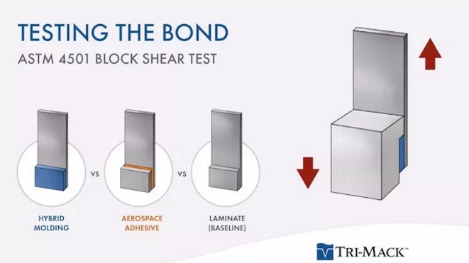 Tri-Mack是一家专门从事高温热塑性塑料和热塑性复合材料部件的工程和制造公司。近,Tri-Mack公司分享了其新测试成果,该测试证明了其包覆模制热塑性复合材料混合部件的黏结强度。该公司使用内部制造的取样片进行对比测试(类似于STM 4501块体剪切测试)。