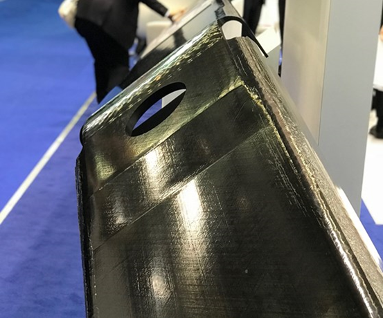 在2018年复合材料展(JEC World)上TenCate展出的碳纤维/热塑性复合材料翼梁结构。