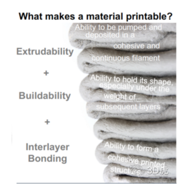 “其他可打印的混凝土包括聚合物纤维,这是种表现出应变硬化行为的可打印的水泥基复合材料,具有超耐用、自我修复和可弯曲/可拉伸的特性。这种弯曲/拉伸只发生在传统混凝土开裂/破坏点以上的荷载下。可打印的ECC不仅在这些过度的载荷下发生弯曲/拉伸,而且还会继续承受更大的载荷,即使它正在以微裂纹的形式积累“损伤”。