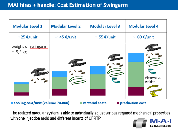 项目简介:该项目开发了一种用于生产复杂形状的碳纤维复合材料摆臂悬架的模块化系统,系统可根据具体情况调整材料的机械性能,与金属解决方案相比具有成本和重量优势。