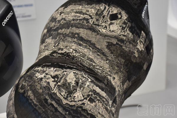 该压力该代表了几个重大的纤维堆叠挑战,双向弯曲表面,小直径下做90°角,纤维围绕凸面和凹面区域的轴向铺放。用Cevotec的SAMBA 系统和cevo材料全自动操作。
