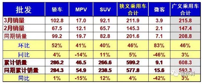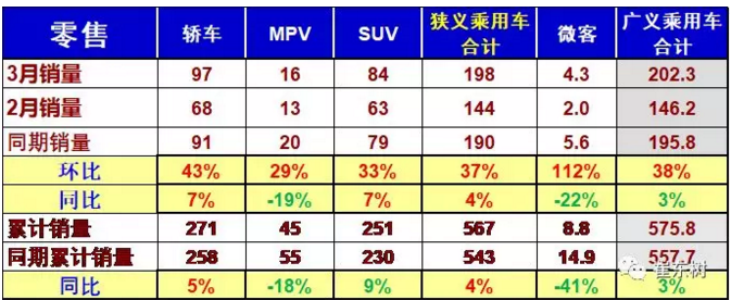 3月是每年生产投资的起步期,是商务和商业类乘用车的销售火爆期,随着金融去杠杆的力度加严,商业流通类的MPV需求持续特别不强,拖累部分优秀自主车企的表现平淡。今年的家用消费升级产品表现很好,高溢价品牌的零售喜人。