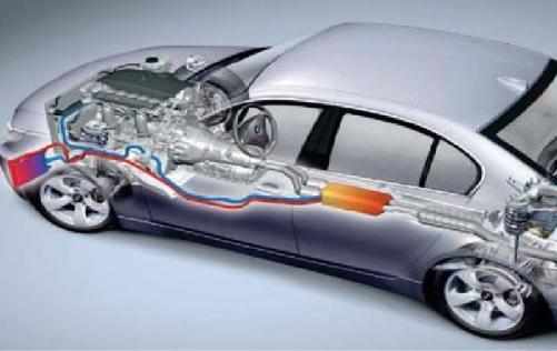 先注明:以下新材料皆是新的科研成果,非科幻(1)热电材料 随着工业化步伐的加快,性的能源短缺已经成为制约经济社会发展的重要因素。通过热电转换装置利用余热、废热直接进行温差发电不但可以有效地缓解能源短缺问题,也有利于减少环境污染。此外温差发电不需要使用传动部件,还具有工作时静音、无排弃物,对环境没有污染,并且这种材料性能可靠,使用寿命长等优点。 以车载热电发电机为例,在内燃机中汽油产生的总能量的大约1/4被用于真正地驱动车轮,40%随排放热量耗损,30%损失在发动机冷却过程。这意味着70%的可提供能量被浪费了。2008年美国俄亥俄州立大学开发了一种新型高效掺铊碲化铅合金材料,虽然类似的发明并不算新颖,但是此次的这种新型材料的有效范围却在450~950华氏度之间,而大多数的汽车引擎温度恰好在这一区间之内。此外,这种新型材料的转化效率是目前商业应用热电材料的2倍。 在此研究成果的基础上,2010年美国能源部可再生能源实验室在宝马发动机上测试了汽车热电发电机(见下图),试验结果表明该热电发电机能回收尾气管排出的4%-5%废热能,能完全取代车载交流发电机(提供500瓦至750瓦电力),提升整车燃料效率10%左右,而这10%仅仅在美国的通用车辆每年节约超过1亿加仑的燃料。