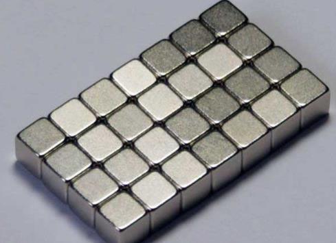 (9)烧结稀土磁体 稀土材料对风力发电机、纯电或混合动力汽车等新能源装备制造业至关重要。小型的烧结稀土磁体就可以提供强大的磁场,使得制造商能够制造出更小更轻的发动机。美国电子能源公司与特拉华州立大学合作开发出新型烧结稀土磁体制造工艺,提高电阻率30%,可在发动机高速运转的情况下降低发动机能源损耗。下图镀镍钕磁体,是应用广泛的稀土磁体之一。
