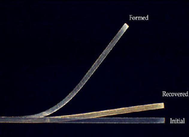 (12)形状记忆材料 这种形状被改变之后,一旦加热到一定的跃变温度时,它又可以魔术般地变回到原来的形状,人们把具有这种特殊功能的合金称为形状记忆合金(如下图)。1932年瑞典人奥兰德在金镉合金中次观察到''记忆''效应,尽管这种合金开发迄今不过几十年,但由于其在各领域的特效应用,正广为世人所瞩目,被誉为"神奇的功能材料"。