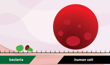 细菌直径1μm而人类细胞直径25μm,因此锋利的薄片不会损伤人类细胞。那些对细菌来说致命的刀伤对人类细胞不过是“挠痒痒”而已。