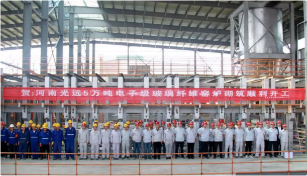 光远新材5万吨电子纱窑炉砌筑正式开工