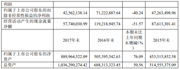 同日,碳元科技还发布了《2017年年度报告》、《2018年季度报告》,显示2017年公司实现营业收入5.00亿元,较上年同期增长7.29%;实现归属于上市公司股东的净利润5121.33万元,较上年同期下降37.80%。一季度公司实现营业收入1.10亿元,较上年同期下降7.51%;实现归属于上市公司股东的净利润856.84万元,较上年同期下降38.72%。