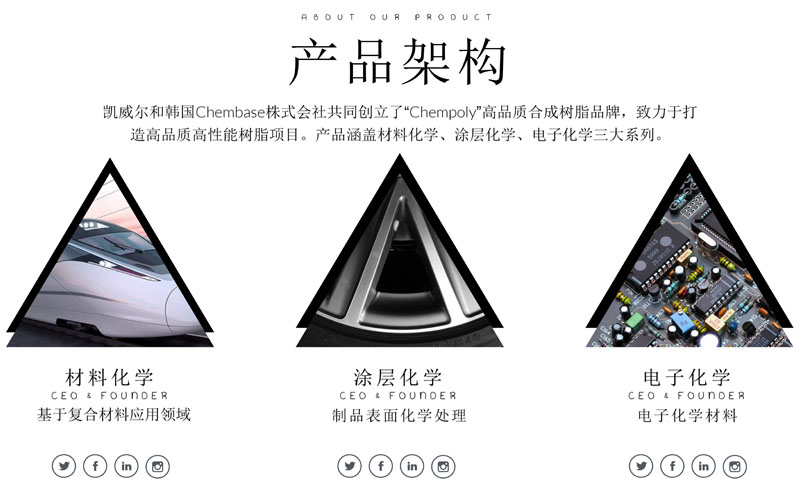 山东凯威尔新材料有限公司与韩国Chembase 株式会社进行技术合作,成为了一家技术上更为先进、管理上更为国际化的中韩合作企业。Chembase株式会社成立于2000年6月,致力于开发前沿高端可持续发展复合材料,并与韩国檀国大学进行技术合作,下设化学研究所,坚持科学技术的原始创新。凯威尔与Chembase充分利用在资源、资金、技术和管理等各方面的优势精诚合作,在市场充实和完善上下游产品线,提高产品在乃至国际市场的竞争优势,并为用户提供更为便捷的服务。