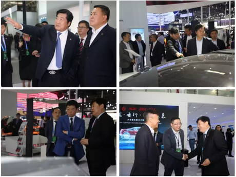客户云集展台(左上为北汽董事长徐和谊,右上为华晨集团董事长祁玉民,左下为长城汽车董事长魏建军、右下为蔚来联合创始人、执行副总裁郑显聪)