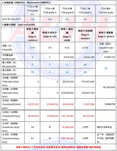 III. 从A-建设期开始到D-产品达标,周期长短,是检验碳纤维投资项目成败的重要标准。目前国际水平基本是12-14个月,这个产品达标:不仅包含生产线A等品的比例(应该是90%以上),还包含产品的预计成本达标(这其中,资本投入,能耗消耗,原丝得率,人工消耗,均要达标)。这个“达标周期”,可以成为一个单位工程能力与效益的评价指标。对于工业企业,我们企业家与媒体:用从关注试生产期间的个别纤维指标超过XX公司,转移到关注“达标周期”有多长,只有生存,这些技术能力才有持续的机会。