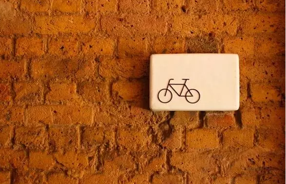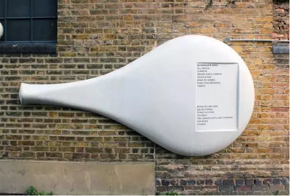 外面的标志用玻璃纤维增强塑料制成,被做成一个指向入口的灯泡,它在夜晚用一盏黑色的灯点亮。