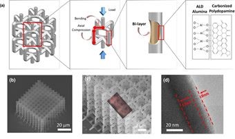 “我们发现,陶瓷纳米线的机械性能可以通过纳米陶瓷/碳纳米晶格显著改善,使它们具有更好的刚度、循环性和刚性/强度重量比,”他解释道。