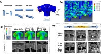 相反,Cheng和他的团队创建了一种弯曲主导的空心纳米材料(B-H晶格),具有优异的强度、可恢复性和循环性,他们涂覆碳化聚合物纳米层以减少变形过程中的弯曲。