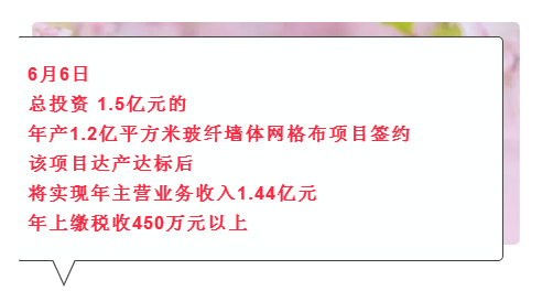据了解,该项目总投资 1.5亿元,固定资产投资 1.2亿元(其中设备投资 7500 万元,基本建设投资 4500 万元),项目达产达标后,将形成年产玻纤墙体网格布、石材基布1.2亿平方米的生产能力,实现年主营业务收入1.44亿元、上缴税收450万元以上。