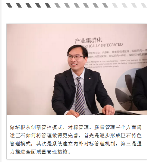 张毓强总裁在2018年工作会议上提到,巨石要通过管控精准,实现生产力的再提高,核心竞争力的再提升。