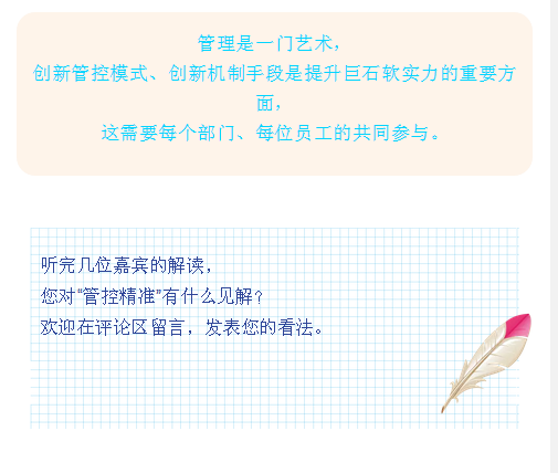 那么,这次来听听几位部门一把手对管控精准的看法,他们分别是体系管理部总经理储培根、稽审法务部总经理廖信林、三分厂厂长沈林、财务预算部总经理朱友光、采购供应部总经理孙兆华。