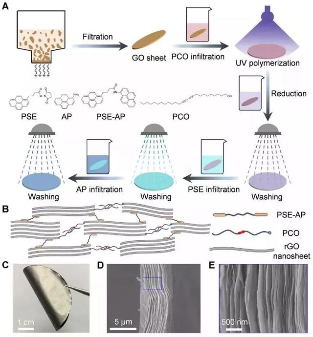日前,北京航空航天大学程群峰教授课题组和美国得克萨斯大学达拉斯分校雷·鲍曼团队共同采用室温π-π共轭键和共价键有序交联策略,仿生构筑了超强、超韧、高导电的多功能石墨烯复合薄膜。这种廉价、低温的高性能多功能石墨烯纳米复合材料在航空航天、汽车、柔性电子器件等领域具有广泛应用前景,并有望替代目前广泛应用的碳纤维复合材料。