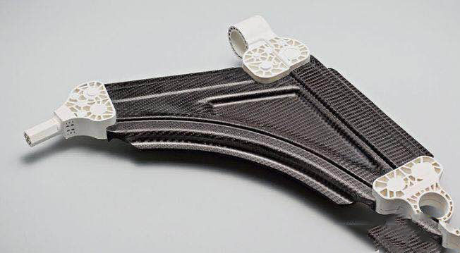 Fraunhofer LBF公司使用由纤维增强聚合物制成的轻量化的控制臂,证明传统上由金属制成的高负载悬架部件可以被复合部件替代。FRP控制臂比传统的同类产品轻35%,质量仅为2.1千克。