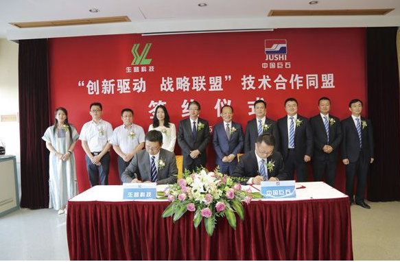 5月15日,巨石与生益科技在巨石科技大楼签订“创新驱动 战略联盟”技术合作同盟协议,巨石总裁、巨石集团董事长兼CEO张毓强,生益科技总经理陈仁喜共同见证,巨石副总裁、巨石集团总裁杨国明与生益科技营运总监吴小连上台签约并揭牌,巨石销售总监张志坚主持仪式。