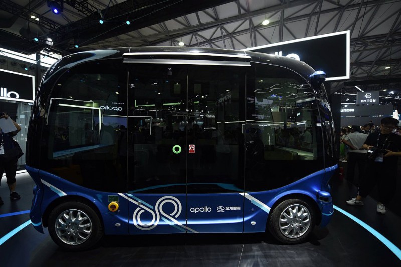 国内款商用级无人驾驶巴士“阿波龙”亮相上海的2018上海亚洲电子消费展,很是吸引参观者的目光。 “阿波龙”是由百度公司和金龙客车合作生产的辆商用级无人驾驶微循环电动车,该车在设计上颠覆了传统汽车概念,全新构建电动化、电子化及智能化的新形态,它前后安装有激光雷达、超声波雷达等传感器,能持续监测路面情况、周围物体,具有车流判断、路牌识别、避障等能力。“阿波龙”车身还采用了RTM轻型复合材料、整体全弧玻璃、宽幅电动门、自动无障碍爱心通道等新材料和新工艺。 “阿波龙”车身长4.3米,宽2米,共8个座位,核载14人(含6个站位),采用纯电动动力,高时速40公里,满电情况下可以跑100公里。