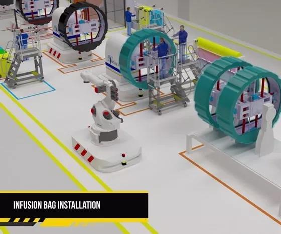 步骤1:MTorres用机器人制造飞机的自动化工厂理念。