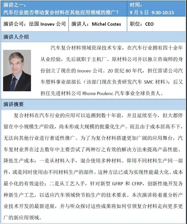2018年9月5-7日,在第24届国际复合材料工业技术展览会举办的同期,组委会再度联合法国知名汽车咨询公司Inovev,举办国际车用复合材料创新体验日系列活动。