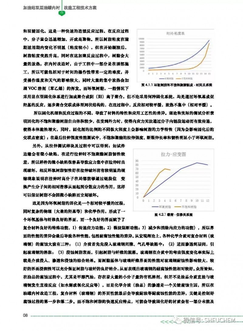 内罐结构中的树脂采用国际上众多系统采用的环氧树脂系统,具有机械强度高、致密性好、延展度大、优良的耐腐蚀性和电蚀性的优点。研发的无溶剂环氧树脂,施工过程无挥发高环保安全,力学性能优异,超低收缩;同时针对国内生物汽油(甲醇汽油、乙醇汽油)的推广,还特别研发了特种耐腐蚀无溶剂环氧树脂。设计寿命30年以上,原材料的质量有保证,耐所有的油品(甲醇油品等)的腐蚀要求,并对油品无污染。