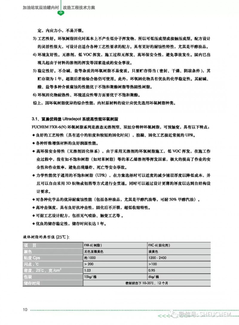 上海富晨化工有限公司专业从事防腐研究20年,参加了国标《加油站在役油罐防渗漏改造工程技术标准》的编写工作,与国内外知名厂家技术合作, 结合实际国情,联合开发推出了新的防渗漏内罐改造技术-优得堡(Ultradepot)系统,该系统采用国内外先进环氧树脂体系、成熟的检漏技术,施工方案的制定、过程检验和施工验收等方面严格遵循标准施行。各位可以电话(021-64759140)或具体咨询我司的技术人员。优得堡(Ultradepot)内衬系统有以下特点: