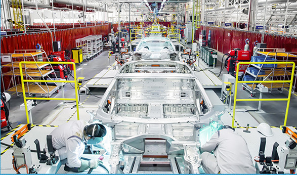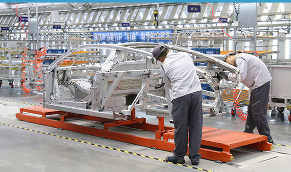 作为国内的新能源跑车制造商,前途汽车焊装车间总占地面积18974㎡,拥有131台工艺设备。车间内实现了高自动化、高柔性化的生产要求,工位间的无缝对接,让整个生产过程达到了质量与速度兼备的高水准,从总拼、乘员舱到机舱及后部总成的每个生产细节严格把关产品质量,实现100%在线检测,确保每个零部件都经得起检验。前途汽车建造的全铝合金框架式车身生产线,为实现整车的框架式结构设计提供了坚实的保障。此外,由于铝合金的热力特点,容易形成热变形,前途也采用了特殊的焊接工艺。前途K50应用了全铝框架工艺,为配合成型的工艺,应用了TIG Welding惰性气体保护焊、MIG Welding惰性气体保护焊、FDS热熔直钻自攻连接、Adhesive结构胶胶接、SPR自穿刺铆接、SCREW螺接和CMT冷金属过渡焊接等技术,保障结构强度。绝大部分的焊接都由机械完成,减少了焊接光等污染对于工人的伤害。自动焊接装置在传统设计的基础上,增加了多定位抱紧及翻转机构,以及矩阵式铜块散热装置,从而有效控制了铝合金的焊接变形。据了解,焊装车间会定期进行车身破拆,以更好地监控内部质量。前途汽车的十字滑台柔性化自动弧焊岛技术,实现了车型自动识别、自动切换,自动输送、自动翻转。工人在上件位安装零件,完成后滑台输送至焊接位,机器人进行焊接,焊接完成上面焊缝后,伺服变位机自动翻转,机器人焊接反面焊缝。车型切换时通过MES信息,自动完成车型切换。可实现完全柔性生产,不会占用生产节拍。