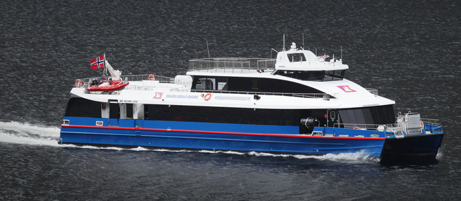 A carbon fiber catamaran for sightseeing tours through the Lysefjord in Norway