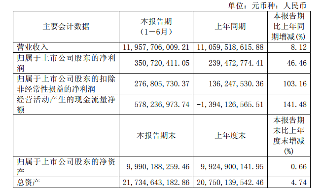 8月27日,金发科技(600143.SH)发布《2018年半年度报告》,显示上半年公司实现营业收入119.58亿元,同比增长8.12%;实现归属于上市公司股东的净利润3.51亿元,同比增长46.46%。具体如下: