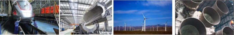 国防军工、航空航天、轨道交通、体育休闲、电子电器、工业机器人、汽车轻量化、船舶与海洋、风能与电力、环境与建筑、油漆与涂料、防爆压力容器装备与特殊管。