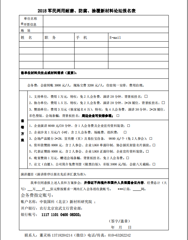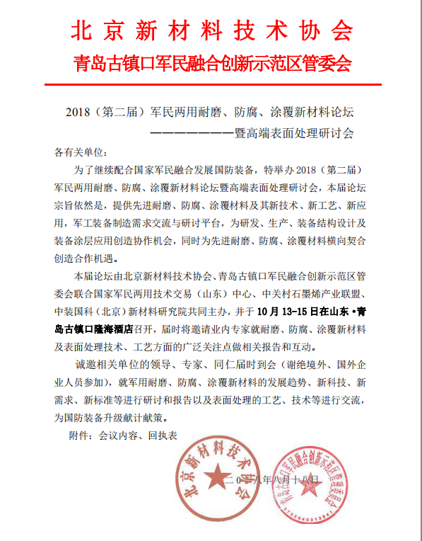 2018(第二届)军民两用耐磨、防腐、涂覆新材料论坛