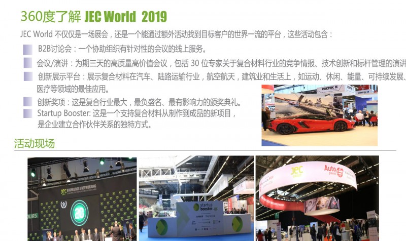2019年法国JEC复合材料展+豪华舒适商旅行程!快来看看上历史悠久,面积大的专业复合材料盛会吧! 未来已来,您还不来?