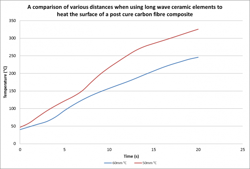 A comparison of various distances when using long wave ceramic elements to heat the surface of a post cure carbon fibre composite