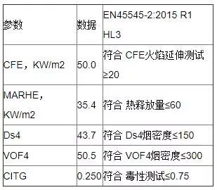 郎搏万阻燃低发烟预浸料EN45545-2:2015/R1/HL3阻燃等级测试结果
