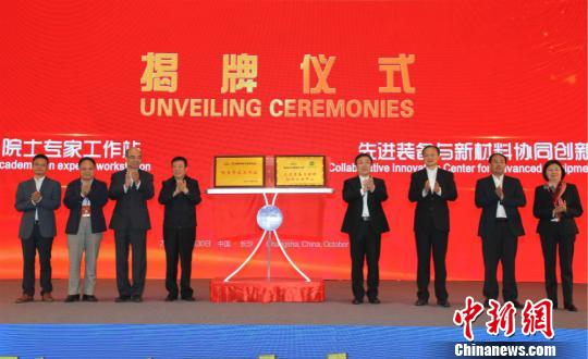 “蹇锡高院士专家工作站”“湖南航天与中南大学先进装备与新材料协同创新中心”在会议现场揭牌成立。 代妍 摄