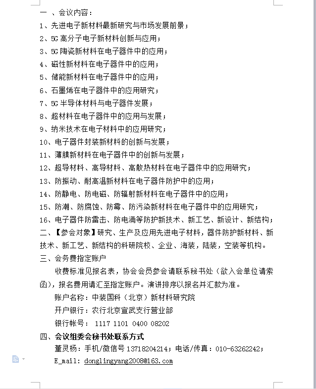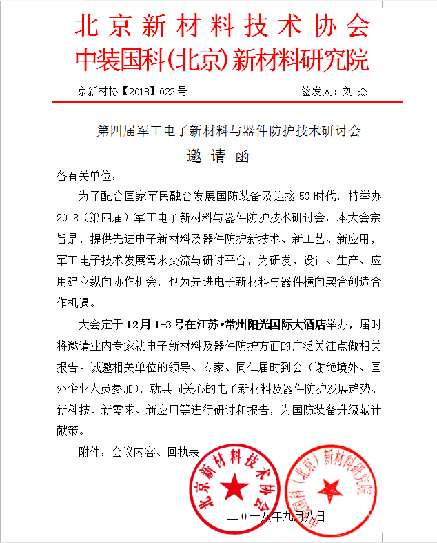 第四届军工电子新材料与器件防护技术研讨会邀请函