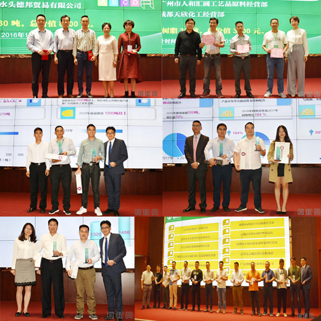 本次交流会主办方特设颁奖环节,颁发了近两年来用量/销量排名前三的公司和专门为11家合作伙伴设置的特殊贡献类奖项,并且安排了福田化学两年一次的经销商授牌仪式。