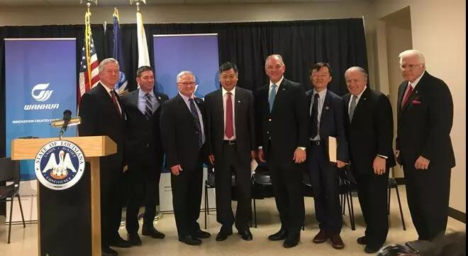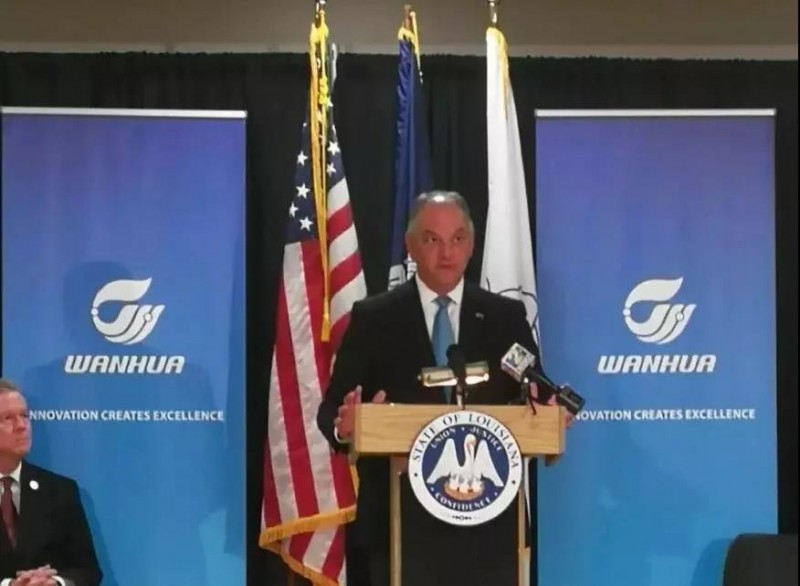 美国当地时间11月16日下午,在路易斯安那政府官员、驻休斯敦总领事馆总领事、当地社区及客户代表的共同见证下,万华化学集团股份有限公司副总裁、Wanhua Chemical US Operations LLC CEO华卫琦博士与路易斯安那州州长约翰·爱德华兹先生共同宣布,万华化学美国MDI一体化项目将正式落户路易斯安那州St. James区Convent市。