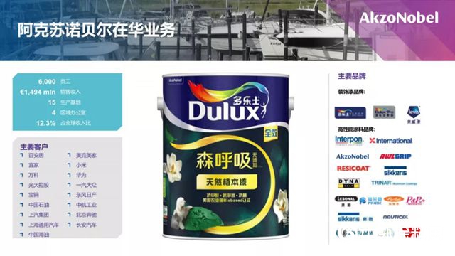 阿克苏诺贝尔席执行官范迪睿(Thierry Vanlancker)表示:“一直以来都是,并将持续成为阿克苏诺贝尔战略性成长市场。此次收购为我们提供了十分理想的契机,它将增强公司的市场领导地位,驱动我们为市场创造更大的价值。同时,此次收购将帮助我们继续转型成为一家专注于油漆和涂料的公司,是促使我们在2020年达成15%销售回报率战略目标的重要里程碑。”
