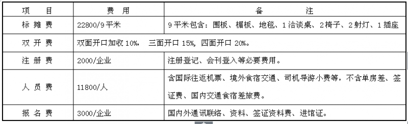 【注1】随团参展费用:摊位费+注册费+人员费+报名费。