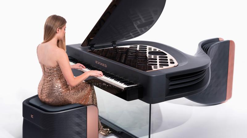 Exxeo是一种高科技钢琴,由碳纤维、汽车皮革和航空级铝材料制成。先进的音板扬声器系统;通过200瓦9扬声器音响系统重现大钢琴的宽动态范围。其专用的内置电池使钢琴一次充电可以使用长达20小时。