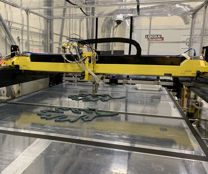 “我们所做的刀具路径开发是热固性材料所独有的,”Lindahl解释道。 “我们可以通过稀疏填充开始打印非常有效的结构,然后使用零空隙层打顶。我们从0°/ 90°交替层开始,然后在单个过渡层中以0°和90°打印路径开始,然后在其上面加上固体印刷层。这使您可以打印大面积,同时显着减少打印材料以及重量,打印时间和成本。“ORNL博士后研究员Chris Hershey将于9月26日星期四10月29日在CAMX 2019上发表技术文章解释这项技术。早上00点。 “具有固体周长的稀疏填充结构的大规模反应挤压沉积”已经获得CAMX 2019杰出技术论文和增材制造会议轨道中的佳论文。